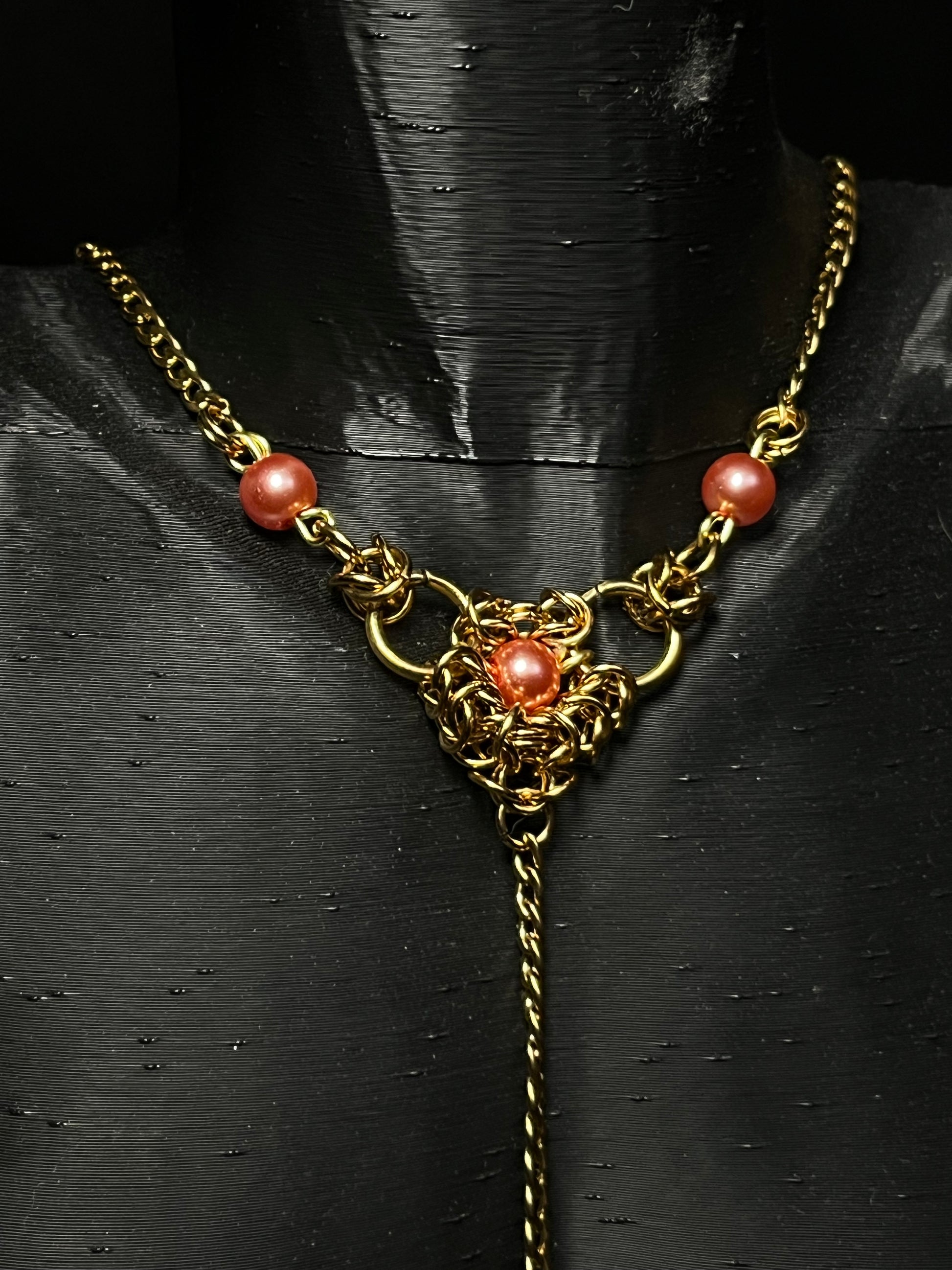 L’Été 85 Necklace est un collier raffiné en acier inoxydable, sublimé par une perle de culture en pendentif et des perles en verre délicates. Sa chaîne dorée, ornée d’une pierre suspendue, crée un design élégant et fluide, parfait pour rehausser n’importe quelle tenue.