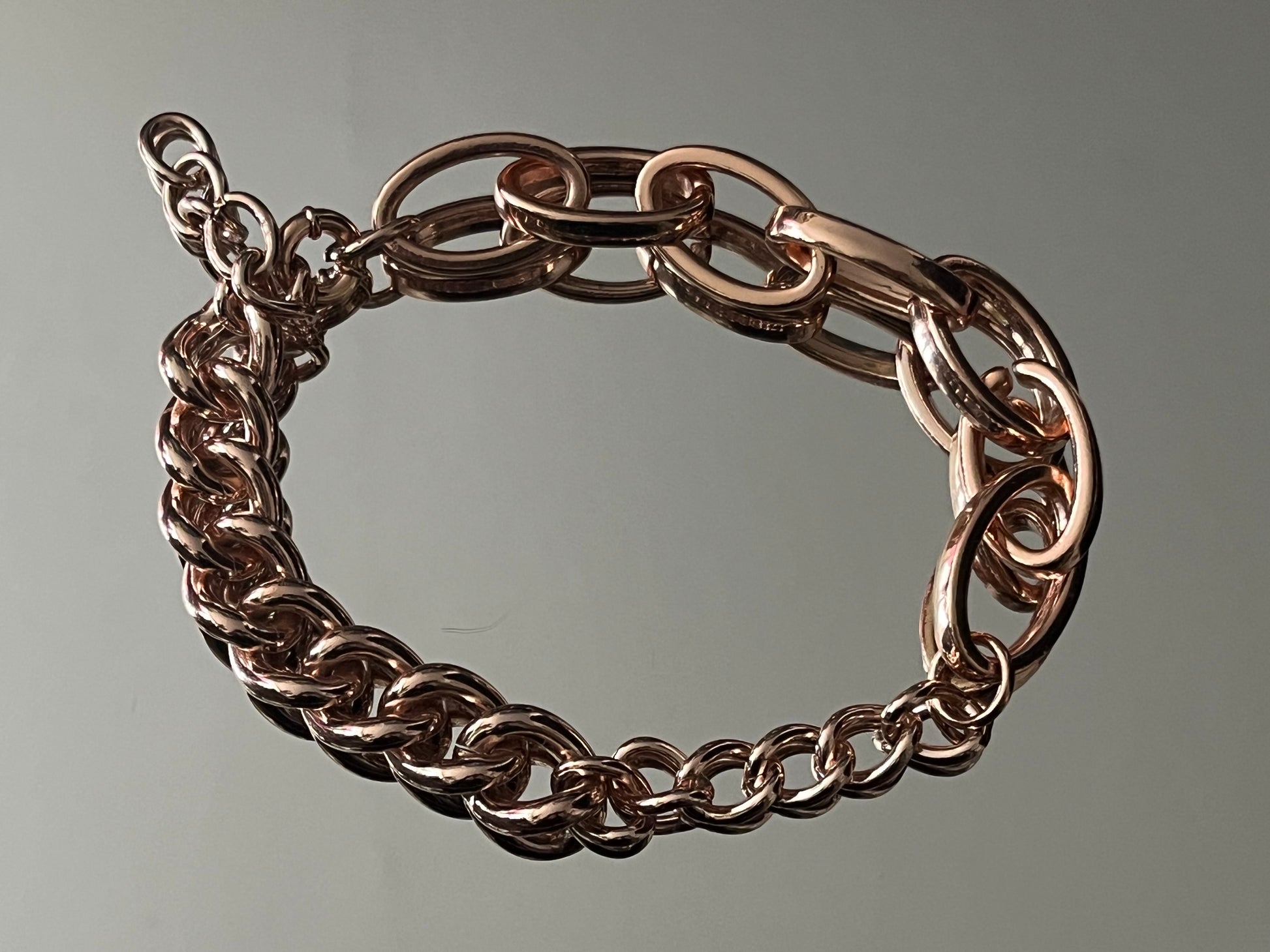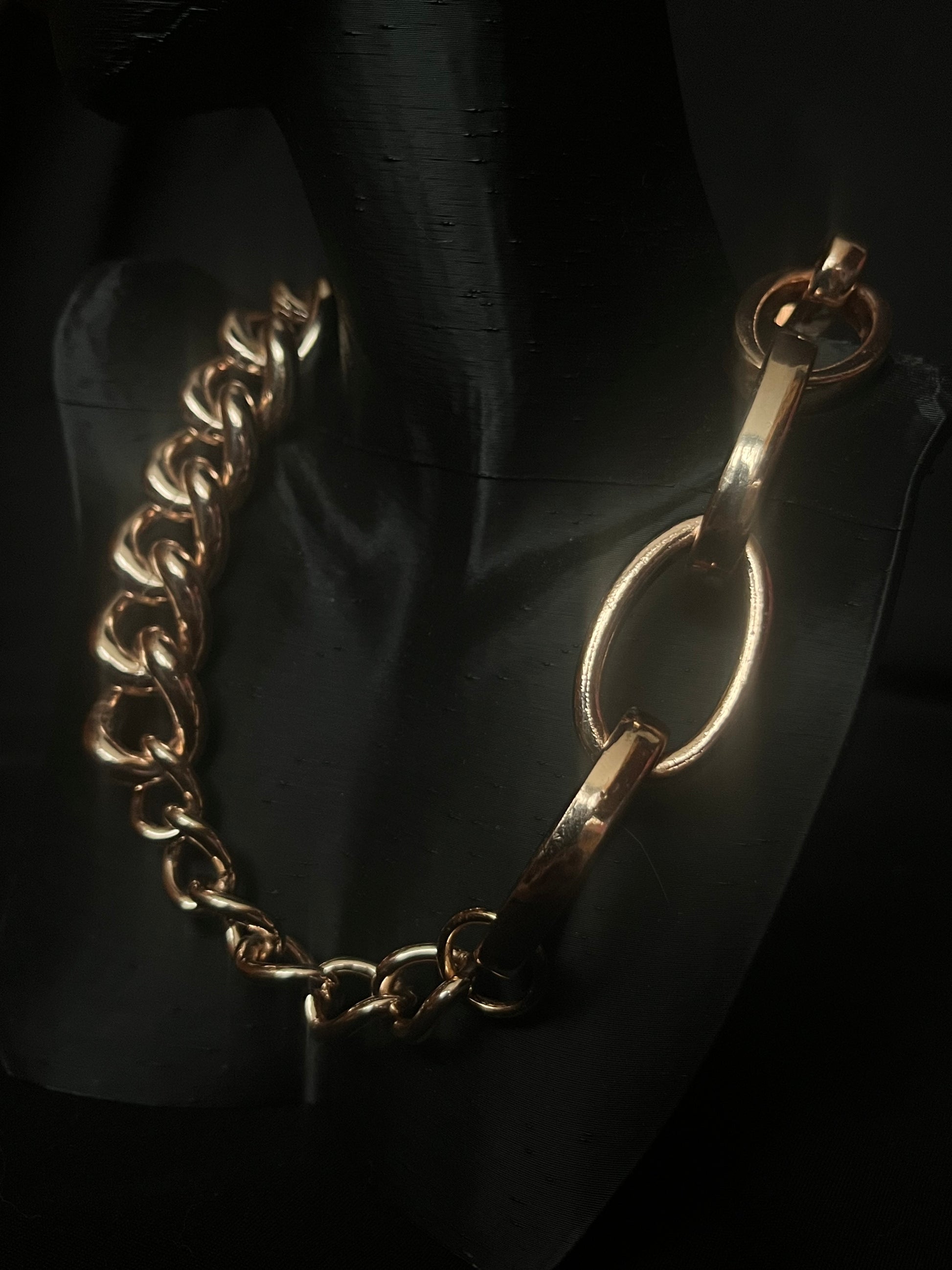 Le Basic Cruella reprend les codes des autres colliers Cruella avec ses deux chaînes dépareillées cependant il garde une couleur or rose uniforme qui le rend relativement « basic » !