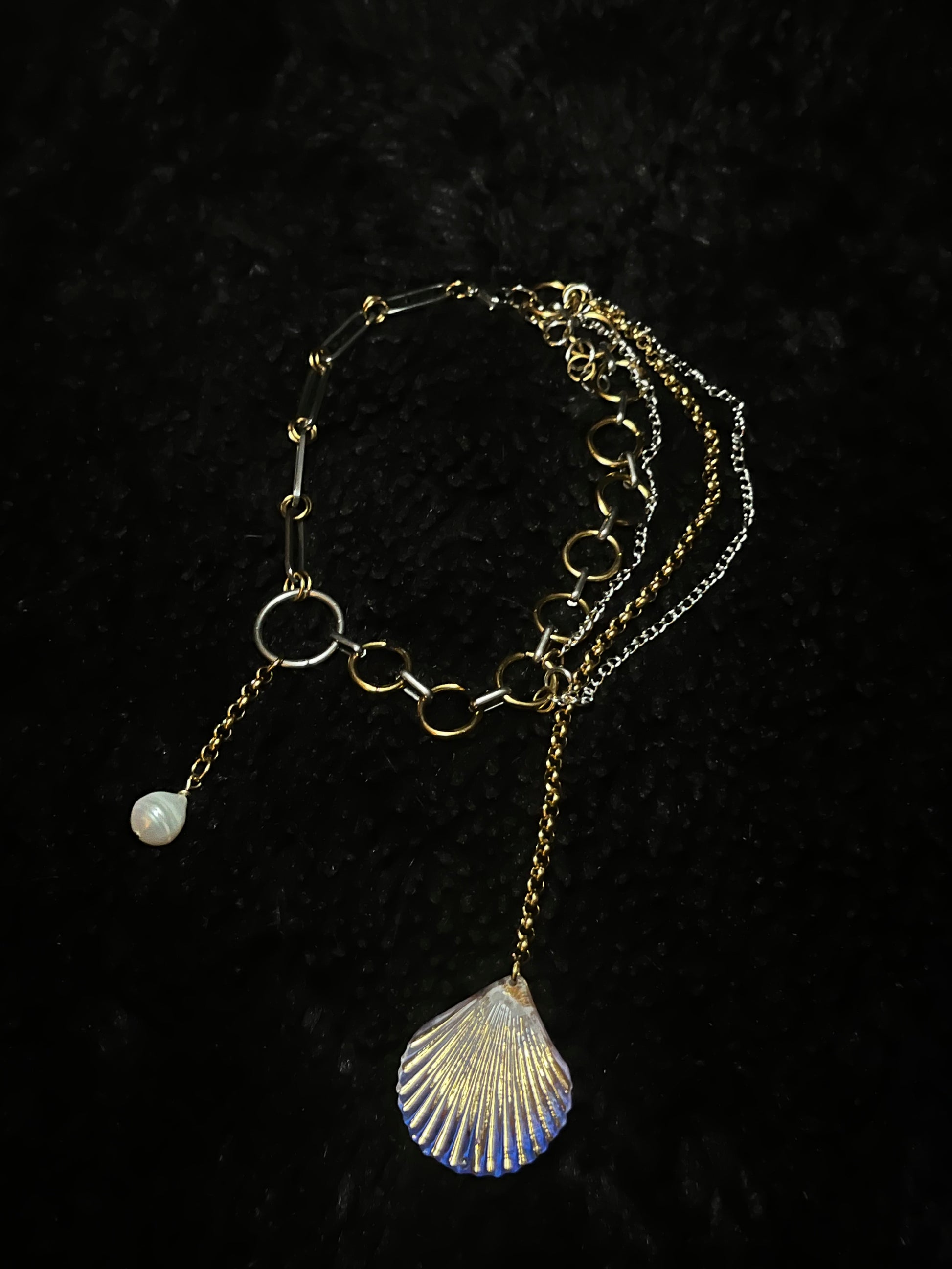 Matériaux : Acier Inoxydable 304, résistant à l’eau, perle d’eau douce, pendentif coquillage en résine.